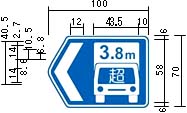8 駐車場を表示する案内標識について、便所を表す記号を表示する場合にあっては、当該記号の大きさは、駐車場を表示する記号の0.7倍以下とする。 9 縁の太さは、道路に設置する待避所及び駐車場を表示する案内標識にあっては9ミリメートル、総重量限度緩和指定道路及び高さ限度緩和指定道路を表示する案内標識にあっては16ミリメートル、登坂車線を表示する案内標識にあっては10ミリメートル、道路の通称名を表示する案内標識にあっては8ミリメートル、その他の案内標識にあっては文字の大きさの20分の1以上を基準とする。 10 縁線及び区分線の太さは、文字の大きさの20分の1以上を基準とする。 | |||||