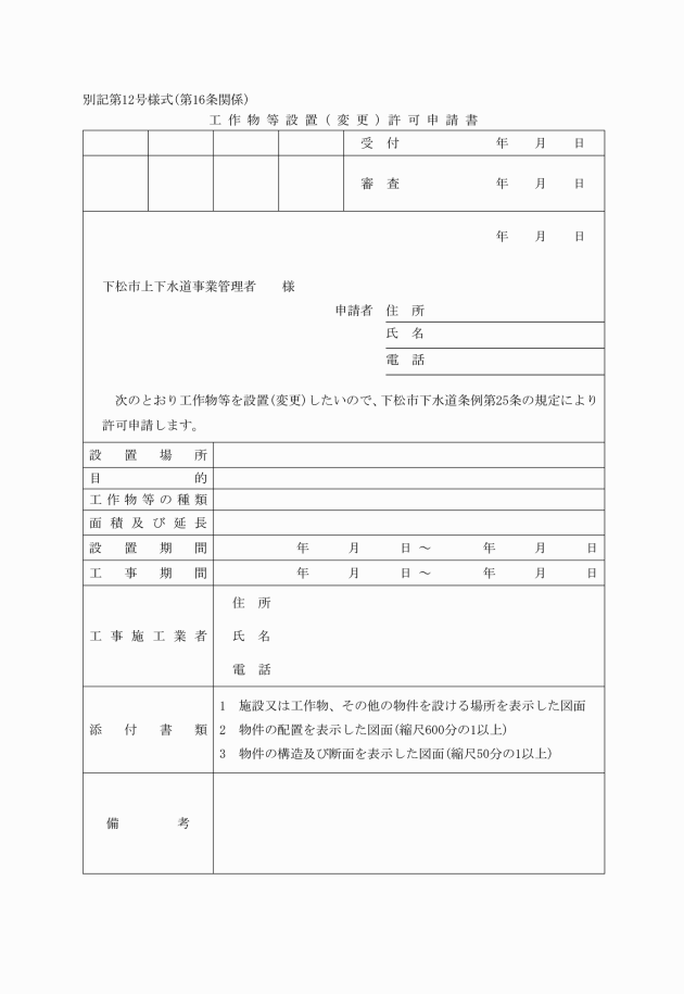 (2) 工作物を設置しようとするときは、その設計書及び図面。ただし、軽易なものに限り、その一部を省略することができる。