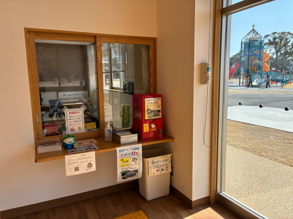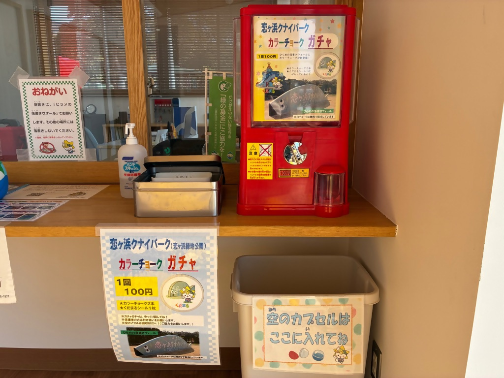 管理棟内に「ひらめの落書きウォール」で使用できる「カラーチョーク」ガチャを設置しています。