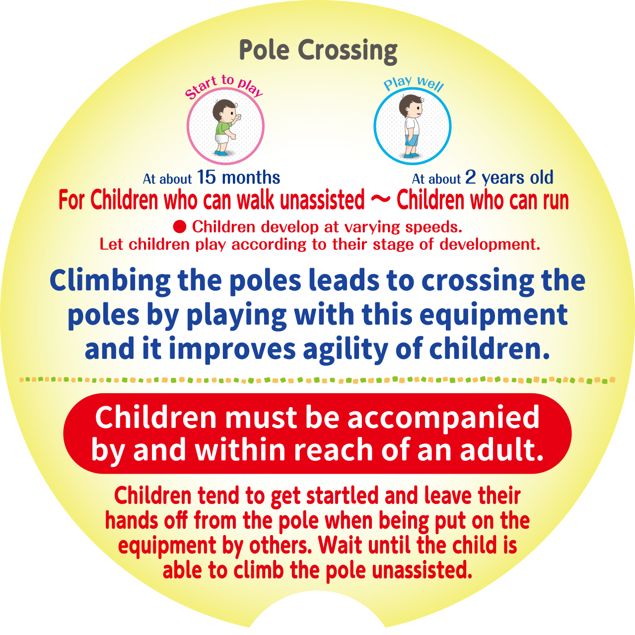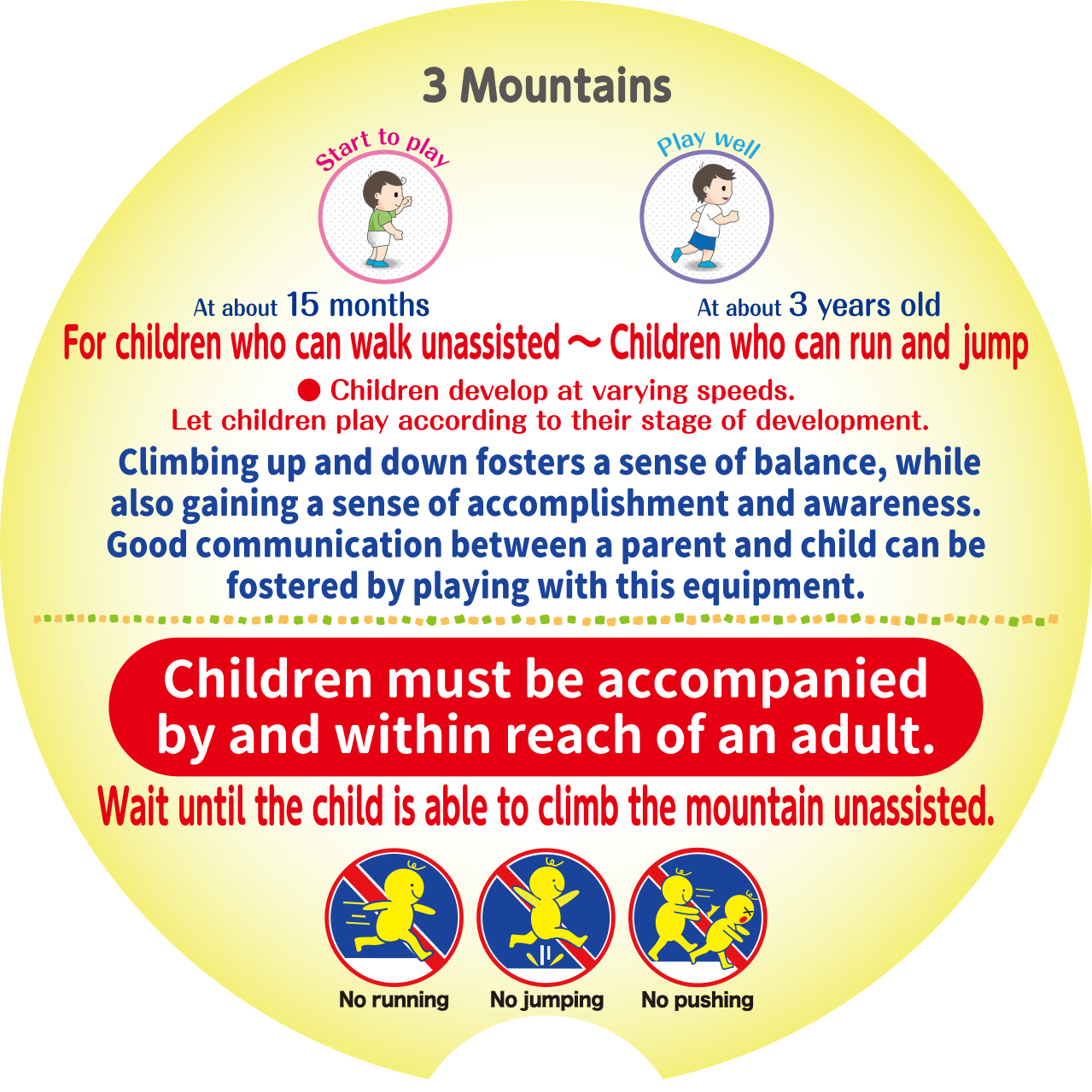 みんなの体力にあわせて遊びをえらべるように、遊具を年れいごとにエリア分け!